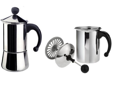 Frabosk SET Roma "Cappuccino Creamer Espressokocher" 6 Tassen Edelstahl Der perfekte Milchschaum in wenigen Sekunden zubereitet
